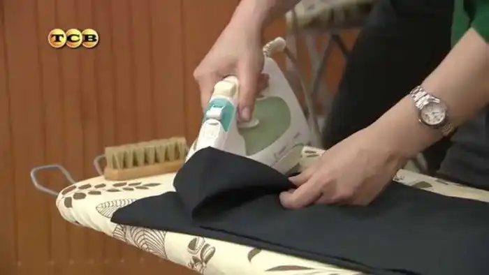 Чтобы после глажки стрелки брюк надолго сохраняли свою форму, нужно с изнанки натереть ткань вдоль стрелки сухим мылом, вывернуть на лицевую сторону и отутюжить