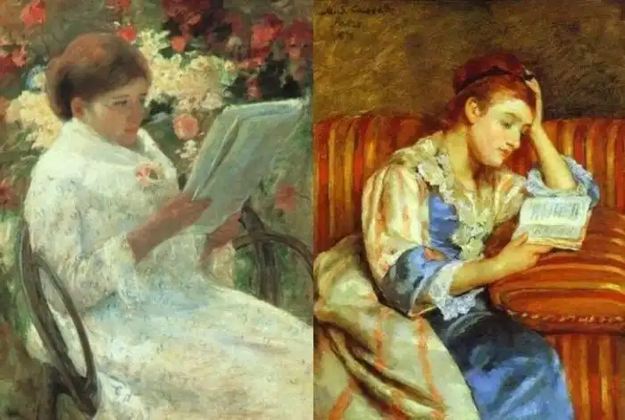 Мэри Кассат. Слева — «Женщина, читающая в саду», 1880. Справа — «Молодая женщина за чтением», 1876