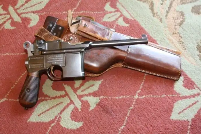 Немецкий самозарядный пистолет «Маузер К96» – оружие действительно гениальное. Он стал одним из символов революции в России 1917 года. К сожалению, он же является лицом таких событий, как Гражданская война и последовавший за ней «террор». Пистолет был запатентован еще в 1895 году. Оружие получилось весьма эффективным и очень надежным. Деревянная кобура, которая использовалась в качестве приклада, позволяла превратить пистолет в карабин. Скорострельность оружия могла достигать 900 выстрелов в минуту.