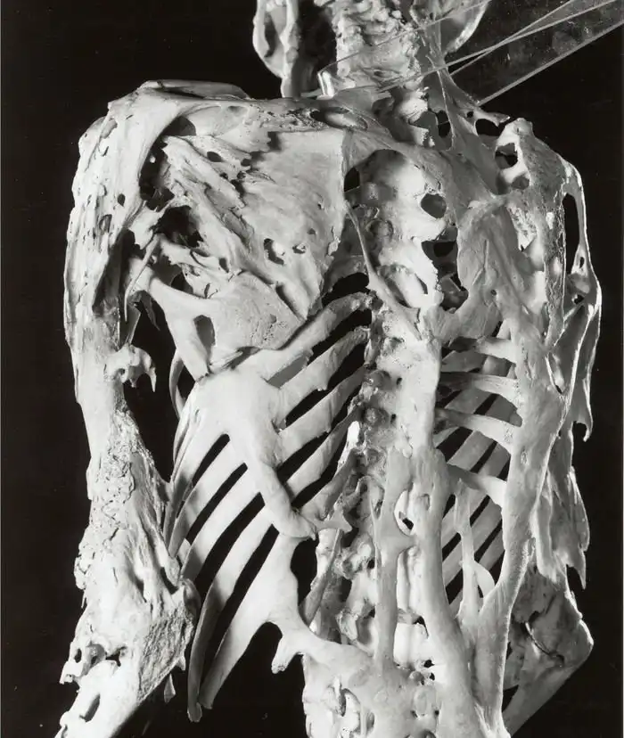 Фибродисплазия оссифицирующая прогрессирующая превращает мягкие ткани организма (сухожилия, связки и хрящи) в костную ткань. Так как мягкие ткани затвердевают, то человек не может двигаться. Этот процесс начинается в основном в детстве с шейного отдела и медленно опускается ниже. Человеку становится тяжело дышать, он превращается в живую статую. Такие больные обычно не доживают до 40 лет.