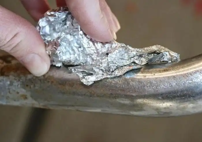 Фольга является неплохим средством от ржавчины. Достаточно взять смятый кусочек материала и потереть им по проблемной поверхности. Можно, таким образом, даже бампер автомобиля почистить.