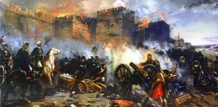 Кульминация русско-турецкой войны - взятие Измаила. Неприступная крепость, которую тщетно пытался взять Потемкин, была построена по всем канонам современного на тот момент искусства фортификации. Потемкин вызвал Суворова, тот подготовился к атаке за шесть дней и взял ее. Потери русских - 4 тысячи человек, потери турков - 29 тысяч человек. Это просто немыслимый подвиг, как в русской, так и мировой военной истории. Причем в Измаиле было много пушек, амуниции и боеприпасов, что потом их с лихвой хватило на нашу истощенную армию.