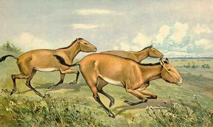 По размерам - чуть меньше современных лошадей, а внешнее отличие – более короткие и толстые ноги. Паслись огромными стадами – по тысяче голов, так было проще обороняться от хищников. Оказались тупиковой ветвью фауны. Вымерли, не оставив современных потомков, так как предки современных лошадей принадлежат к другому роду.