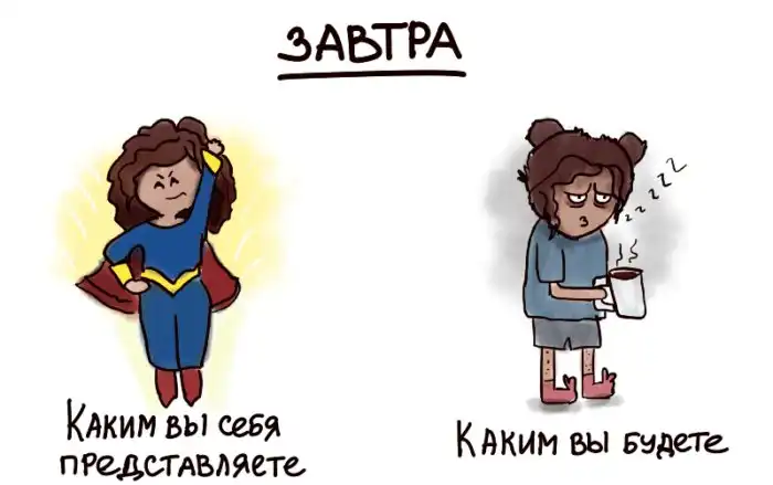 Прежде чем откладывать что-то, подумайте о своем психологическом состоянии в будущем — каким уставшим, истощенным и сонным вы скорее всего будете. Осознанная оценка надежности может послужить мотивацией для того, чтобы все же выполнить задуманное сегодня.
