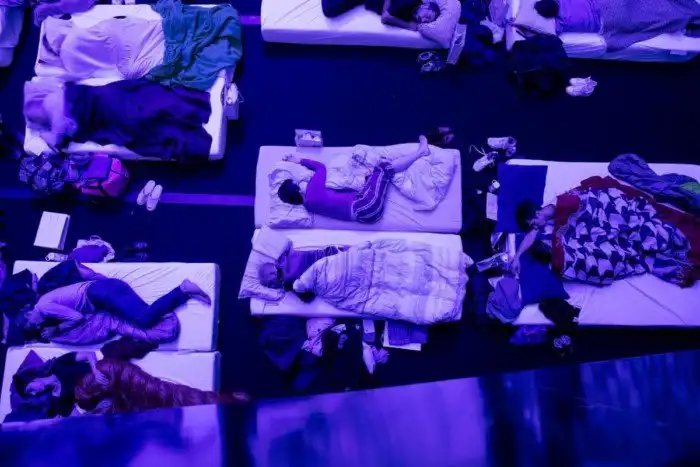 На этой фотографии не приют для бездомных и не центр временного содержания беженцев — это Парижская филармония. Люди спят во время исполнения (следующая фотография) альбома Sleep композитора Макса Рихтера. Это минималистичное произведение было написано с оглядкой на научные достижения, его цель — сделать так, чтобы за время исполнения слушатель полноценно отдохнул. Длится оно 8 часов.