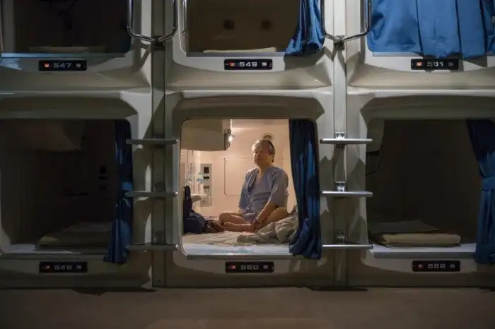 Постояльцы старого отеля в токийском районе Синдзюку — преимущественно одинокие мужчины — спят в занавешенных капсулах, пользуются общей ванной и небольшой комнатой отдыха. Для некоторых этот отель стал домом: Масахару Хасимото (70 лет), бизнесмен из капсулы номер 550, живет в этом отеле уже 6 лет. Постояльцы старого отеля в токийском районе Синдзюку — преимущественно одинокие мужчины — спят в занавешенных капсулах, пользуются общей ванной и небольшой комнатой отдыха. Для некоторых этот отель стал домом: Масахару Хасимото (70 лет), бизнесмен из капсулы номер 550, живет в этом отеле уже 6 лет.