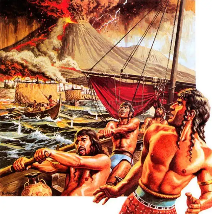 Цивилизацию уничтожила природная катастрофа. 1,7 тыс лет до н. э. произошло мощное извержение вулкана Санторин в Эгейском море. Один из крупных островов просто разорвало на части. Ученые оценили силу извержения в 200 тыс атомных бомб.