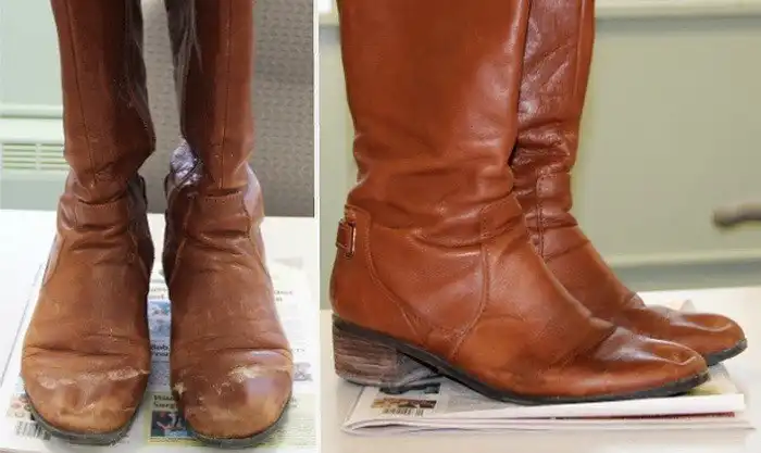 Чтобы избавиться от трещин на обуви, можно использовать несколько подручных средств. Одно из самых простых – пчелиный воск. Нанесите его тряпкой на чистый ботинок, оставьте высохнуть на 7-10 минут. Затем уберите излишки мягкой тряпкой, а сверху покрасьте краской для обуви.