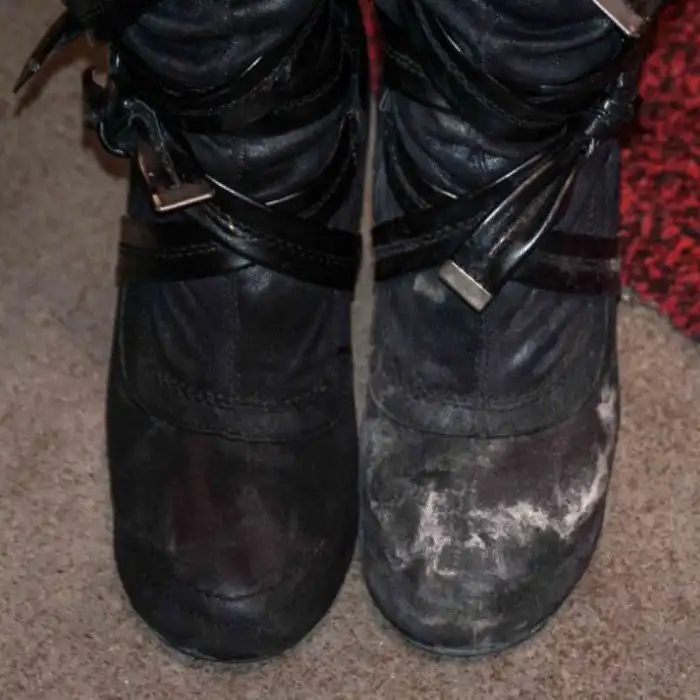 Зимой обувь страдает не только от осадков, но и от соли, которой коммунальные службы посыпают дороги. Белые разводы не только портят внешний вид, но и разъедают кожу. Чтобы удалить с поверхности обуви этот вредный материал, нанесите обычную зубную пасту тряпочкой круговыми движениями на поврежденное место, а после разотрите обувной щеткой по всей поверхности ботинка. Подождите несколько минут и стирайте мягкой тряпкой. В случае необходимости промойте под проточной водой.