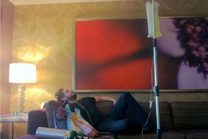 Свою любимую терапию профессор из Торонто (Канада) и бывший владелец бара обнаружил в Лас-Вегасе, в месте, где был снят культовый фильм «Мальчишник в Вегасе», там его подключали к капельнице с физраствором.
