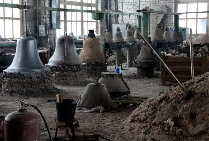 Когда внешняя форма колокола готова, верхний кожух аккуратно снимается, и под ним оказывается точная копия будущего колокола. Но глиняная. Ее вынимают и уничтожают:
