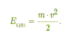 Формула кинетической энергии, где m- масса тела, v-скорость.