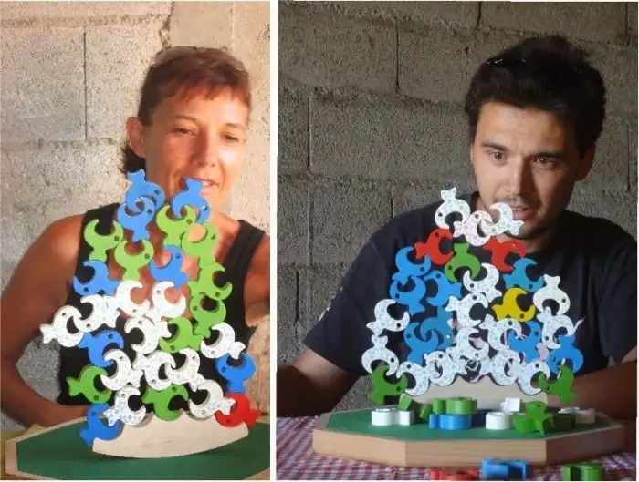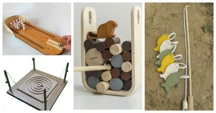 Конечно же это любимая многими дженга, смысл которой выбить из выстроенной пирамиды дощечку так, чтобы все остальное не упало