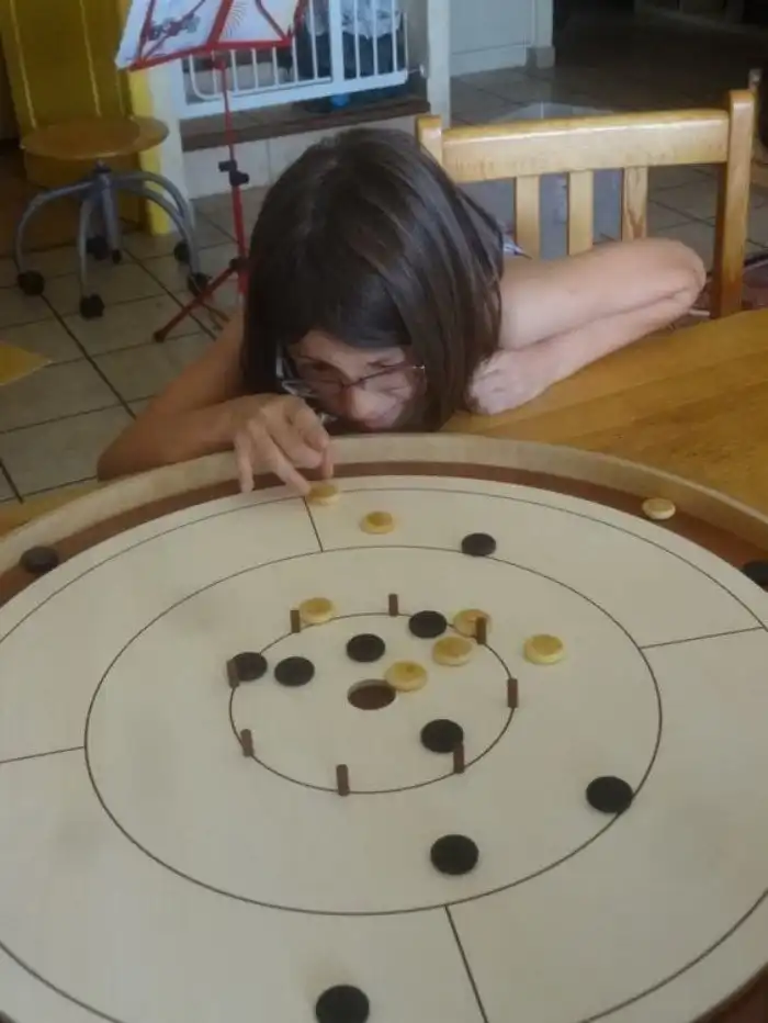Забей фишку в отверстие посредине. Выигрывает конечно же тот, кто забьет все свои быстрее остальных участников