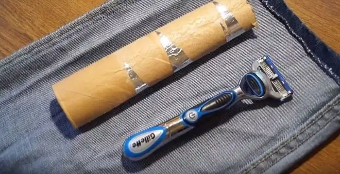 Для того, чтобы реализовать данный способ, нам не понадобится много вещей. Все необходимое найдется в каждом доме, что и делает данный метод столь востребованным. Итак, нам нужна джинсовая ткань (или просто джинсы), а также картонная втулка. Что касается втулки, то подойдет любая, будь она хоть от фольги, хоть от туалетной бумаги или даже пищевой пленки.