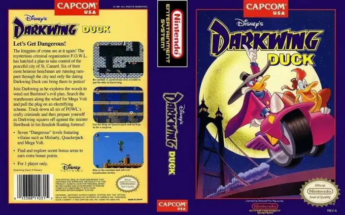 Игра создана по мотивам одноименного мультфильма, где селезень по прозвищу "Черный плащ", противостоит злодеям в своем родном городе под названием Сен-Канар. Игроку предстоит остановить семь злодеев, которые сеют страх и ужас на мирных горожан. Интересные уровни, знакомые персонажи и довольно увлекательный игровой процесс, заставляли многих из нас играть в данную игру часами.