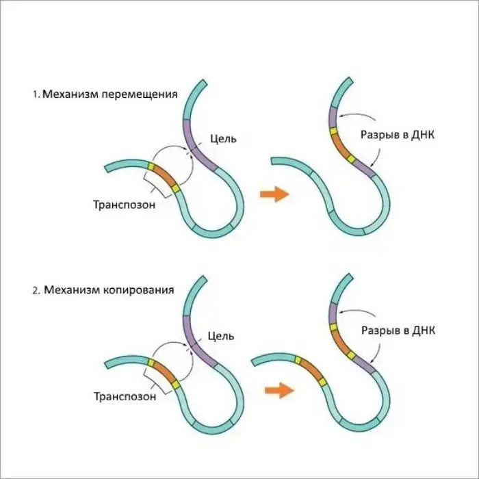 Но как известно эволюция — это череда отбора наилучших изменений. Если бы макромолекулы, сохраняющие информацию, не могли меняться она была бы невозможна в принципе. А мы бы утонули в эксплуатационных возможностях болезней, вирусов, бактерий и паразитов. Возможность сбора и рекомбинации генома зависит от транспозонов, ещё более простых молекул. Это короткие готовые участки ДНК, способные к копированию и передвижению внутри самого генома. Они копируют себя, и вставляются в собирающиеся или уже собранные нити ДНК, помогая её менять, пересобирать, дополнять. У них огромное число функций, так как всё что связано с ДНК на такой микроорганизм как человек влияет миллионами способами. Это и около 100 различных заболеваний: от нейрофиброматоза до гемофилии, и сам механизм эволюционных мутаций, возможность рекомбинировать ДНК, в частности, отвечает за формирование иммунитета, об этом можно писать научные статьи ещё лет 100, и всё время будут какие-то новые горизонты открытий.