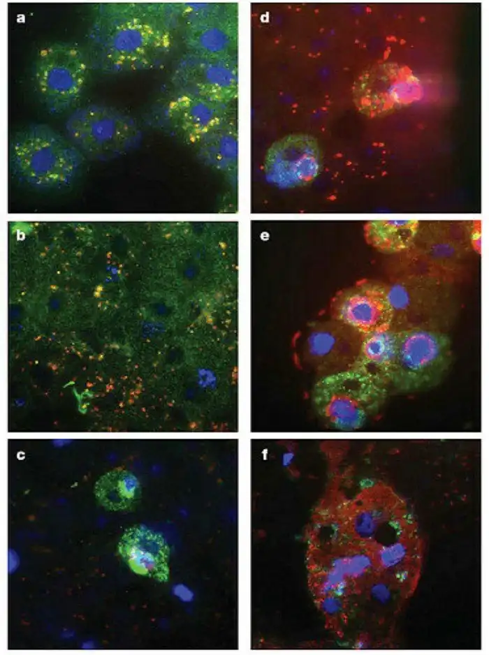 Микрокосмос амёбы, с подсвеченными "паразитами":
