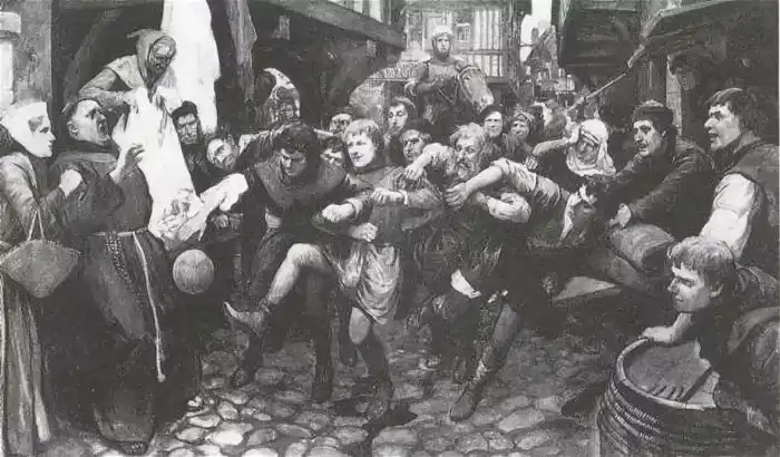 3. Запрет на игру в футбол в Англии. В средние века футбол был крайне травмоопасным и жестоким видом спорта, в который играло неограниченное количество человек. Правило было только одно - никаких убийств. В 14 веке король Англии был вынужден запретить эту игру, так как она больше походила на массовую драку.