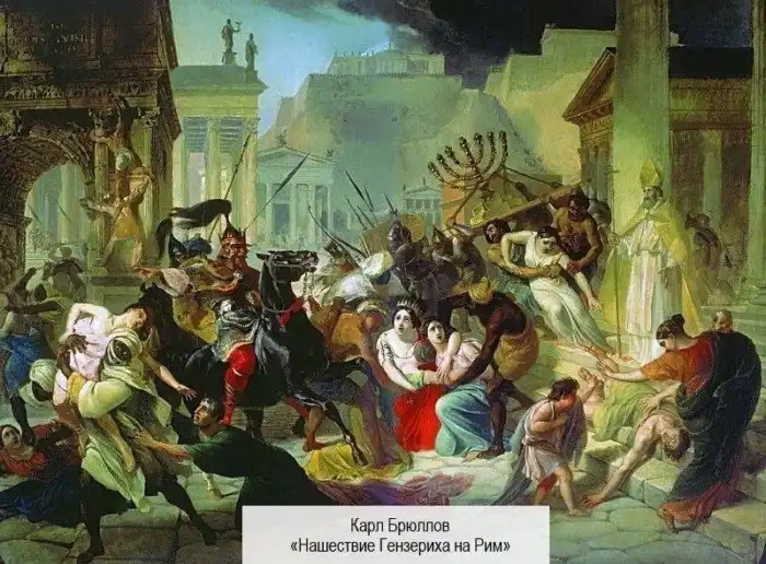 Военачальники вандалов дают приказ выносить из великого города всё, что только можно унести. Воины грабят храмы и дворцы, разрушая всё на своем пути. Теперь уже самих римлян вели как рабов, чтобы потом увезти в Африку, как некогда сами грозные воины Рима привозили с собой немало людей, что были обречены на рабство.