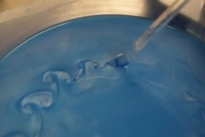 Ячейки имеют размер около полукилометра, резко очерчены и их нежный серо-голубой цвет ни с чем не спутаешь. Они являются вторым по популярности примером неустойчивости Рэлея-Тейлора (смотря что вам нравится больше: лава лампа или ядерный взрыв). Смысл линейной теории устойчивости и задачу о неустойчивости Рэлея-Тэйлора легко представить если провести наглядный опыт (ну или хотя бы представить). Если более плотную и тяжелую жидкость в условиях гравитации поместить поверх менее плотной (вода и нефть, к примеру), разделив их каким то препятствием, а затем резко его убрать – вы увидите подобие ядерного гриба. Направленного вниз. Шляпка гриба быстро вырастет вниз, образуется ножка с множественными вихрями. Это происходит не только из-за разнице в плотности, но и из за того что гравитация (а в случае с ядерным взрывом – собственно взрыв) задают более плотной среде ускорение.