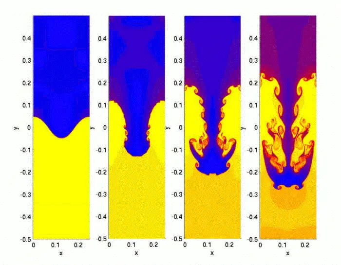 Нестабильность по Кельвину-Гельмгольцу. Несмотря на загадочное название, явление безусловно давно вам знакомое. Суть теории в том, что она предсказывает наступление неустойчивости и переход в турбулентность потоков разной плотности и движущихся с разными скоростями. Самым типичным примером будет ветер и море. Именно так образуются волны. Поток воды имеет большую плотность, чем воздух, разную температуру и разную скорость. При взаимодействии они начинают смешиваться, но притяжение земли возвращает воду обратно в море. Казалось бы, что такого может быть интересного в теории, описывающей возникновение волн и уравнении Тейлора-Гольдштейна, позволяющего их рассчитать.
