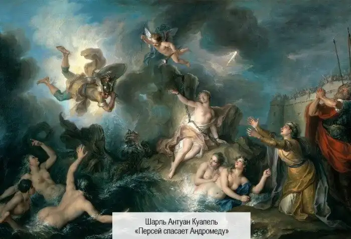 Как выяснилось, красавицу звали Андромеда, а прикована она была к камню в ожидании ужасного чудовища. Когда-то её мать Кассиопея, эфиопская царица, стала говорить, что красотой своей затмит даже морских нимф. Те пожаловались на подобную дерзость Посейдону, который в гневе сотворил чудище, что разрушало некогда цветущий край и уничтожало людей. В ответ на мольбы людей оракул ответил, что спасение – принести в жертву царевну, что и незамедлительно сделали. Правда, безутешные мать и отец молили Персея спасти их дочь, обещая отдать её замуж за героя.
