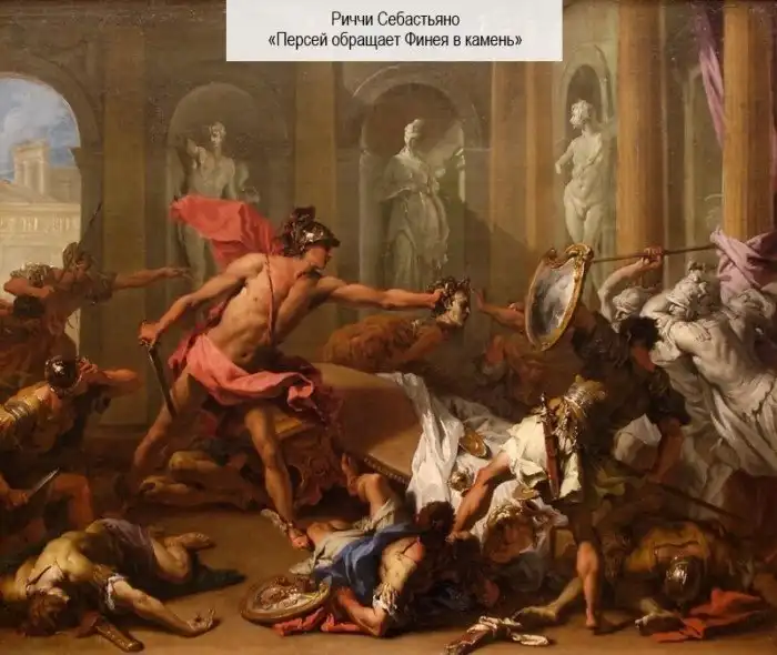 Этот момент гениально запечатлён на картине Риччи Себастьяно «Персей обращает Финея в камень», а потому советую взглянуть на неё, чтобы ощутить весь драматизм момента. По названию картины вполне понятно, что произошло. Даже после смерти глаза Горгоны не потеряли своей способности, а потому воины становятся каменными изваяниями, что падают к ногам Персея.