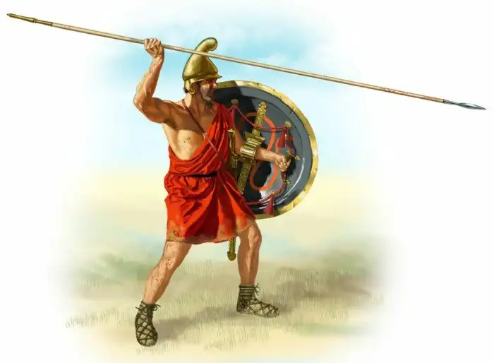 Именно такой образ греческого воина закрепился в массовом сознании. Гоплиты были главной ударной силой эллинских войск и набирались только из числа граждан полисов.