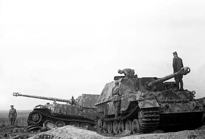 Немецкие танки Тигр II, захваченные советскими солдатами, 1942 © Григорий Капустянский Source: Sputnik
