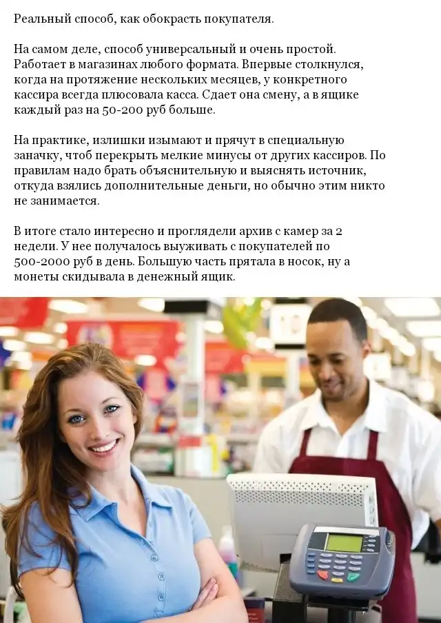 Автор этого поста пишет, что за всю свою практику работы в сетевых магазинах он многократно видел различные способы обмана покупателей на кассе, но фактически, существует лишь только один верный вариант обмана. Для начала, мы разберемся с распространенными мифами и опровергнем их, а затем уже вы узнаете о действующем способе, при помощи которого вас могут "обмануть" на кассе.