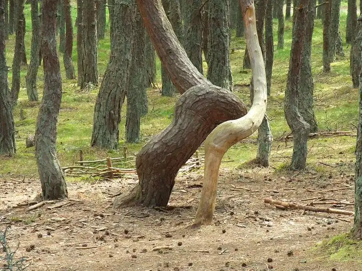 Известная природная достопримечательность расположена под Калининградом. Сосны завиваются в спирали, круги и прочие не свойственные деревьям фигуры. Среди версий — сильный ветер, нестабильная почва, влияние гусениц.