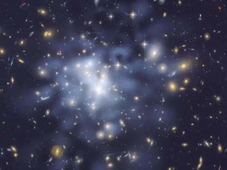 Обычная материя (Земля, животные, растения, микромир и пр.) состоит из протонов, нейтронов и электронов. Темная материя, которую можно увидеть в космосе, — непонятно из чего. Одна из версий: эти частицы мы не можем засечь и определить. Другая: темная материя состоит из первородных черных дыр. Она не поглощает и не излучает свет, но может слегка подсветиться, если направить на нее концентрированный поток частиц (так ее, собственно, и обнаружили). Считается, что темной материи во Вселенной больше, чем обычной.