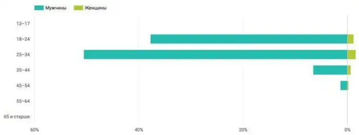 Ещё один пример можно найти в статистике просмотров tutureal – тревел-шоу с ярко выраженной игровой тематикой от 2x2 и Туту. Тут вообще нет детишек младше 18, зато основная аудитория – уже привычные нам любители игр возрастом от 25 до 34 лет.