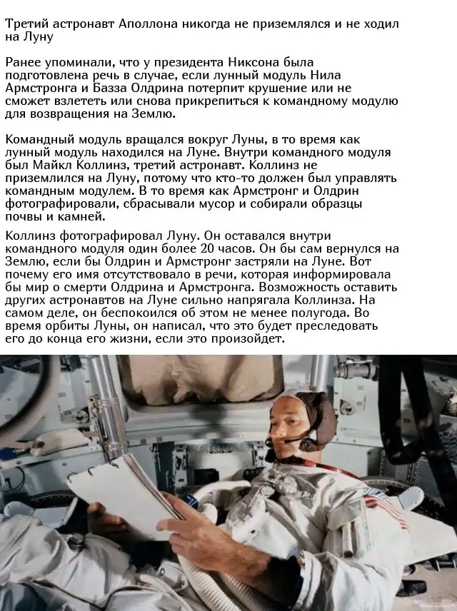 Американский пилотируемый космический корабль "Аполлон-11" стал первым аппаратом в истории, который доставил человека на Луну. В экипаж вошли Нил Армстронг и Эдвин "Базз" Олдрин, которые стали первыми людьми, оказавшимися по поверхности Луны. Но эти факты известны всем. Не так ли? Поэтому сегодня мы предлагаем вам узнать интересную информацию об этом полете и некоторые факты, которые вы могли еще не знать.