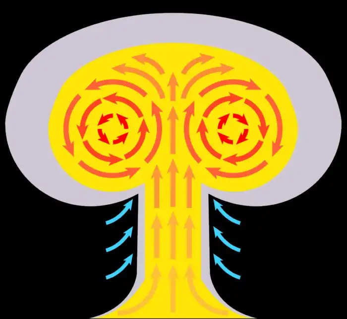 Схема воздушных потоков в грибовидном облаке ядерного взрыва. Источник изображения: wikipedia.org