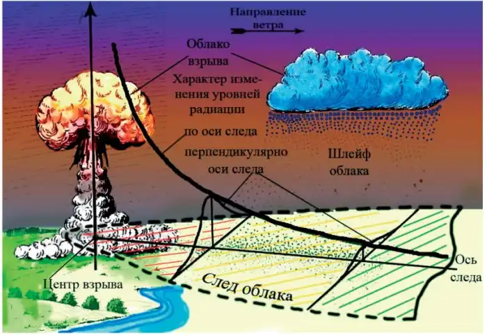 Спустя некоторое время облако уже не в состоянии удерживать содержащуюся в нем влагу, и на землю проливается чрезвычайно радиоактивный дождь. Вред этот дождь приносит неописуемый, так как выпадает множество продуктов радиоактивного распада. Но, как ни странно, есть и один плюс - чаще всего этот дождь гасит пожары вызванные ядерным взрывом.
