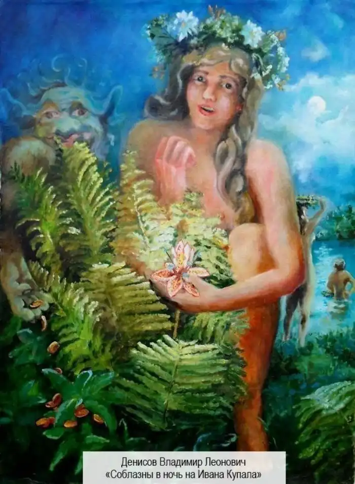 В одной из них говорится о том, что тот отчаянный смельчак, который решится пойти в лес в полночь сможет получить особый дар. Люди никогда не видели цветов папоротника, но верили, что он цветёт один раз в год и именно на праздник Ивана Купала. И тот, кому посчастливиться увидеть этот алый цвет станет на столько прозорлив, что сама земля откроет перед ним все свои сокровища и неслыханные клады.