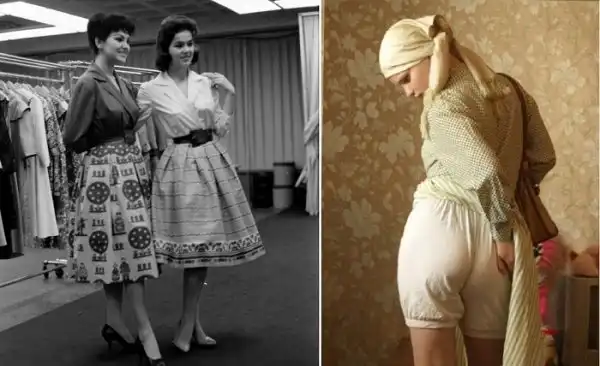Кошмарные бесформенные панталоны до колен, особенно популярные у дам с пышными формами, придавали своим обладательницам просто монументальные объемы. Выглядели эти изделия так, словно их вырезали из двух квадратов 1,5х1,5 м, а затем пристрочили с обоих концов резинки.