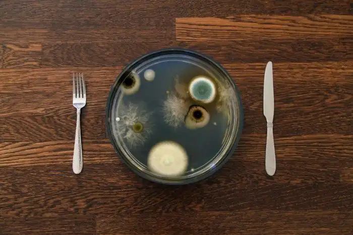 В принципе, скажете вы, ничего сложного. Надо всего лишь следить за качеством сельскохозяйственных продуктов и не допускать заплесневения чего бы то ни было. Но в этом и кроется величайший подвох плесени. Мы используем её везде: от сыра (Penicillium spp. и Penicillium camemberti), батончиков мюсли из соевых бобов (Rhizopus oligosporus), искусственного мяса (Fusarium venenatum), черного чая (имею ввиду пуэр), хереса (Botrytis cinerea), до соевого соуса и мисо пасты (Aspergillus oryzae), и в десятках других продуктов. И, даже если бы мы этого не делали, она всегда с нами. Её споры в воздухе, на земле и в воде. Неизменно. Миллиарды. Лет. Но что же изменилось, спросите вы?