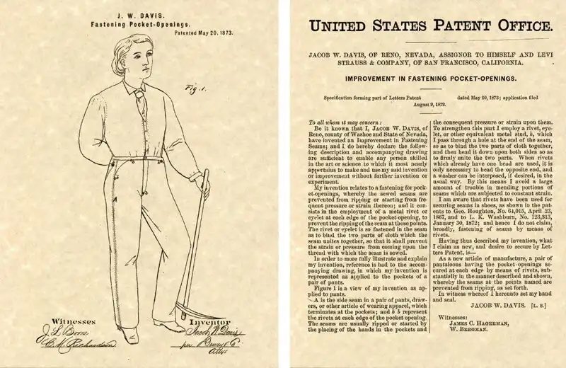 В ответном письме Леви Страусс пригласил Дэвиса возглавить производство штанов с заклепками, сделав его своим компаньоном. 20 мая 1873 года компаньоны получили патент за номером 139121 на «Усовершенствование крепления карманов».