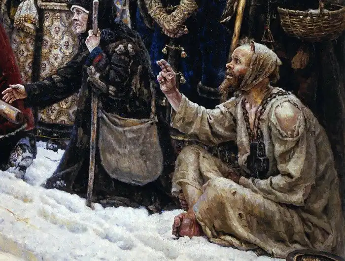 К слову, обличение власть имущих – один из «пунктов программы» юродивых, который мог обернуться гибелью. Тот же Флетчер упоминает о двух юродивых, казнённых во времена предшественника Фёдора Иоанновича. Кроме этого, известно, что в период церковного раскола, начавшегося в сер. 17 века, несколько юродивых были казнены за защиту старой веры.