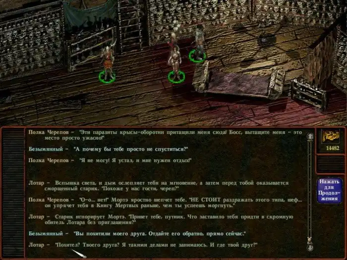 Главгерой просыпается в морге Сигила. У него амнезия. Рядом летает жизнерадостный левитирующий череп Морте, на спине у главгероя обширная татуировка, содержащая намеки на прошлые жизни; в случае гибели главгерой снова просыпается в морге Сигила.