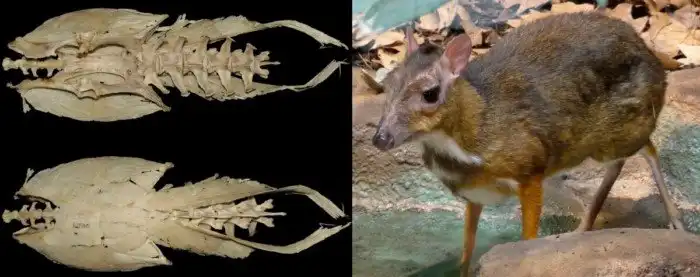 Сросшиеся в единую пластину кости спины и представитель оленьковых: