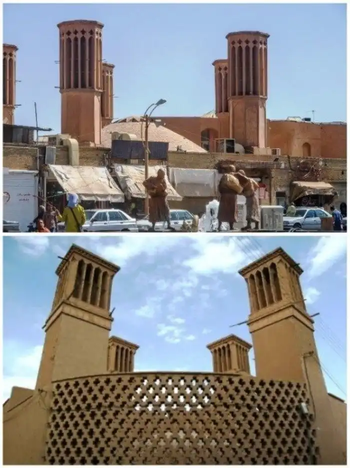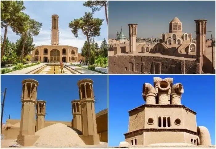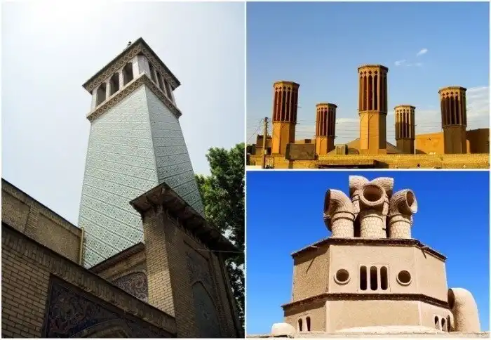 Если же это пустынная местность, такая как в городе Мейбад, то бадгиры возводились низкие и односторонние, ориентированные на сторону, откуда могли поступать прохлада и более приятные воздушные массы с наименьшим количеством раскаленного песка.