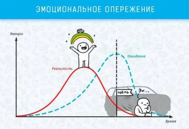 Этот эффект объясняет, почему исполнение долгожданной мечты порой не приносит нам радость. Дето в том, что эмоции частенько опережают события.
