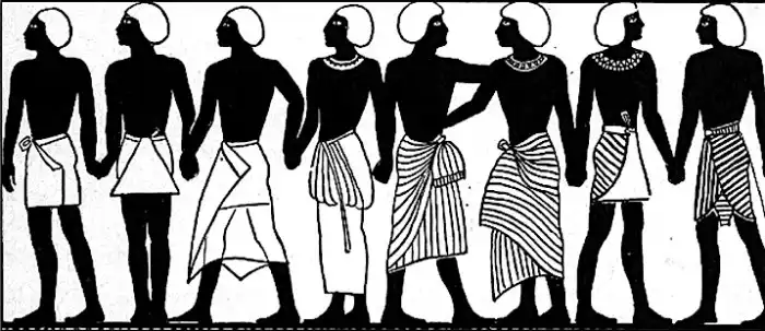 Основным видом одежды для мужчин в Древнем Египте была набедренная повязка, или передник – схенти; женщины же надевали длинную рубашку – калазирис. Позже, во времена Среднего Царства, калазирис начали носить и мужчины. И вот что интересно: «по дизайну» схенти раба ничем не отличался от схенти богатого вельможи и даже самого фараона! Как хвалиться богатством в таких условиях?