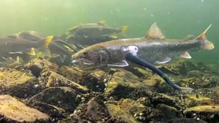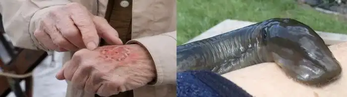 А что, миноги нападают на людей? - спросите вы. А почему бы и нет! - весело отвечу я. Ученые, правда, единогласно заверяют, что такие нападения происходят по ошибке - миноги в принципе ориентируются на хладнокровных и характер их нападения исключает мгновенную смерть. Длинные и скользкие, длиной до 120 см и весом до 2,3 кг с острыми зубами, расположенными последовательными круглыми рядами, они паразитируют на рыбах, присасываясь своей наглой харей к плоти. Затем, последовательно впиваясь всеми рядами своих зубищ, они расковыривают зондирующим языком кожу, выделяют со слюной антикоагулянт лампхредин и сосут себе кровушку.
