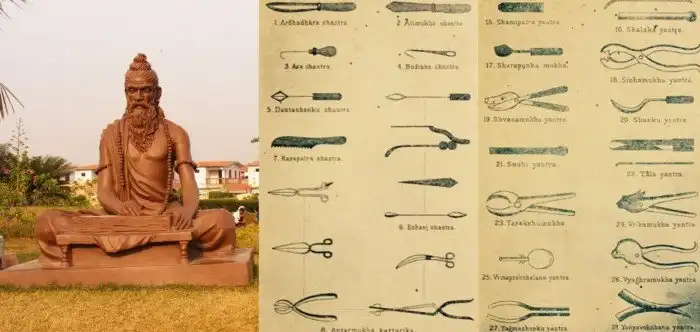 Согласно легендам, он приходился сыном Вишвамитре - ведийскому мудрецу, который был одним из 7 сыновей бога Брахмы, рожденных прямо из – откуда бы вы думали? - из его ума. Эта семерка детей бога считается творцами Вселенной и прародителями всех ныне живущих. Так вот, выходит что Сушрута - медик из благородной семьи и мудрец в трех поколениях – написал труд «Сушрута-самхита». Можно бесконечно спорить, было ли это на самом деле коллективное авторство или всё же Сушрута – историческая личность, но в книге описаны 1120 болезней, несколько сотен лекарственных растений, хирургические методы проведения надрезов, вскрытий, зондирования, удаление геморроя и лечения анальных свищей с последующим щелочным и термическим прижиганием.