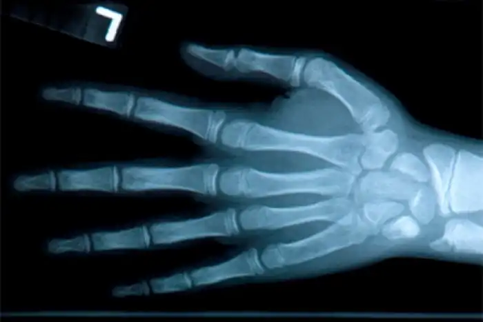 Рентген пытался заблокировать лучи различными предметами, но все было безуспешно. Но когда физик положил перед трубкой руку, то увидел, что изображение его костей проецируется на экран. Используя фотографическую пластинку, Рентгену удалось зафиксировать полученную картинку.